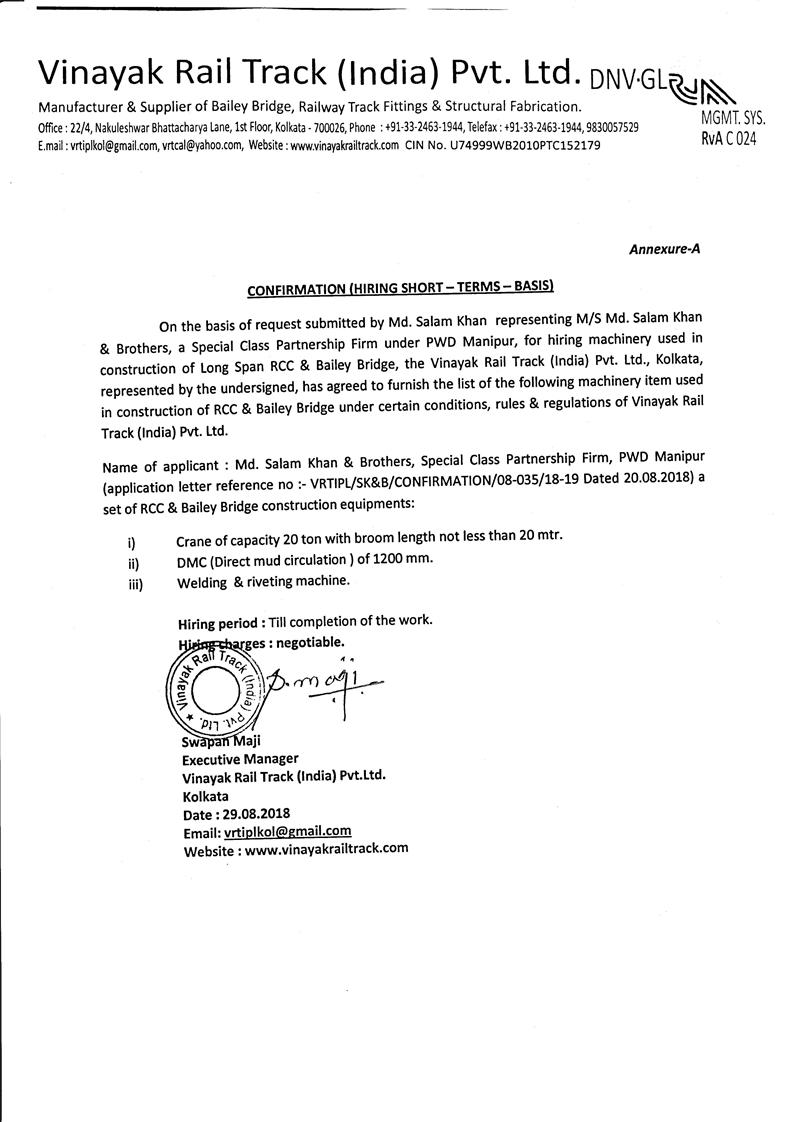 Vinayak Rail Track (I) Pvt. Ltd. an ISO 9001:2015 Company was incorporated in the year 2002 and soon it established itself as an organization of repute. When you entertain a thought of building something which is significant, the first thing which comes in ones mind is to seek out for a reliable partner who can give concrete shape to your thoughts. That is what you will get when you come to Vinayak Rail Track (I) Pvt. Ltd. The entrepreneurial skills of Mr. Shyama Saran Singhania ensured quick prominence for the company in the construction firmament. Beginning with railway track items and structural fabrication over the years' Vinayak Rail Track (I) Pvt. Ltd. has been involved in executing various remarkable projects which include development Bailey Bridges and Bullet Proof Permanent Defence System (PDS) for the Indian Army which is a head turner in the Indian History. The company has acquired the prestigious affiliation with DGQA under Ministry of Defence in manufacturing the bailey bridges. The company is supplying these bridges to various sectors of Indian Defence and other Government organizations of States and Central. Our fame spread all over the neighboring countries and we started export of this item to Nepal and Royal Government of Bhutan.